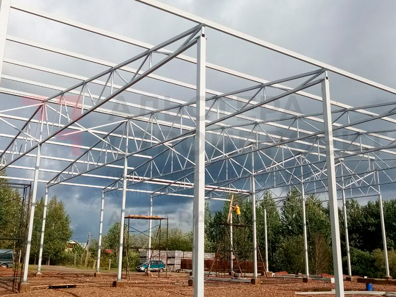 У нас свой завод по производству металлоконструкций. За счет этого вы экономите до 20%. Площадь завода более 1500м2. Вы выпускаем более 400 тонн металлоконструкций в месяц.